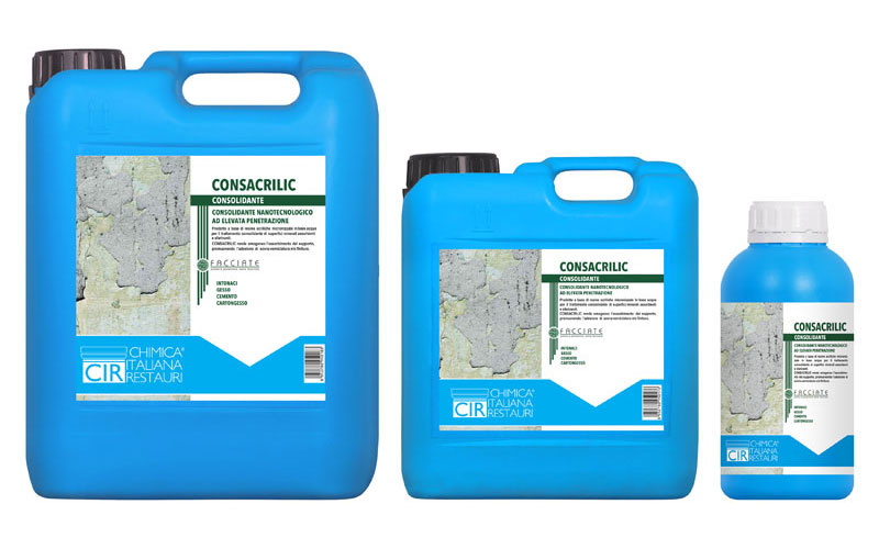 CONSACRILIC è un consolidante ed isolante acrilico a base di resine micronizzate in micro-emulsione acquosa, ideale per superfici minerali assorbenti, sfarinanti e decoese come intonaci, manufatti, cemento, gesso e cartongesso. La sua elevata penetrazione offre una profonda azione riaggregante, migliora l'omogeneità dell'assorbimento e ottimizza l'adesione di coating successivi senza alterare colore e traspirabilità.