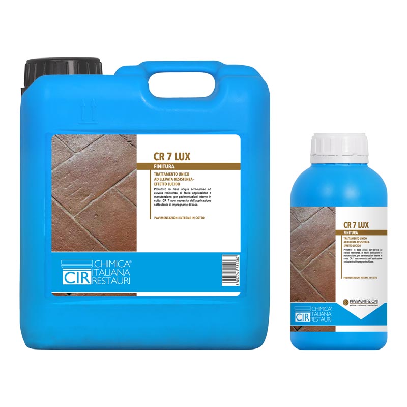 CR 7 LUX è un trattamento protettivo all'acqua acril-ceroso antimacchia ad elevata resistenza per pavimenti in cotto, mattoni e manufatti assorbenti in interno. Protegge da sporco, acqua e olio, conferendo lucentezza e resistenza all'usura e al calpestio.