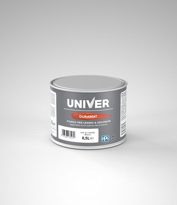 Duramat è un fondo bianco opaco a solvente, indicato per la preparazione di supporti in legno da utilizzare sia in interno che in esterno. Assicura una buona adesione della finitura successiva e deve essere sempre ricoperto per proteggere efficacemente i manufatti in legno. È applicabile con pennello, rullo o spruzzo, ed è pronto all’uso senza necessità di diluizione.