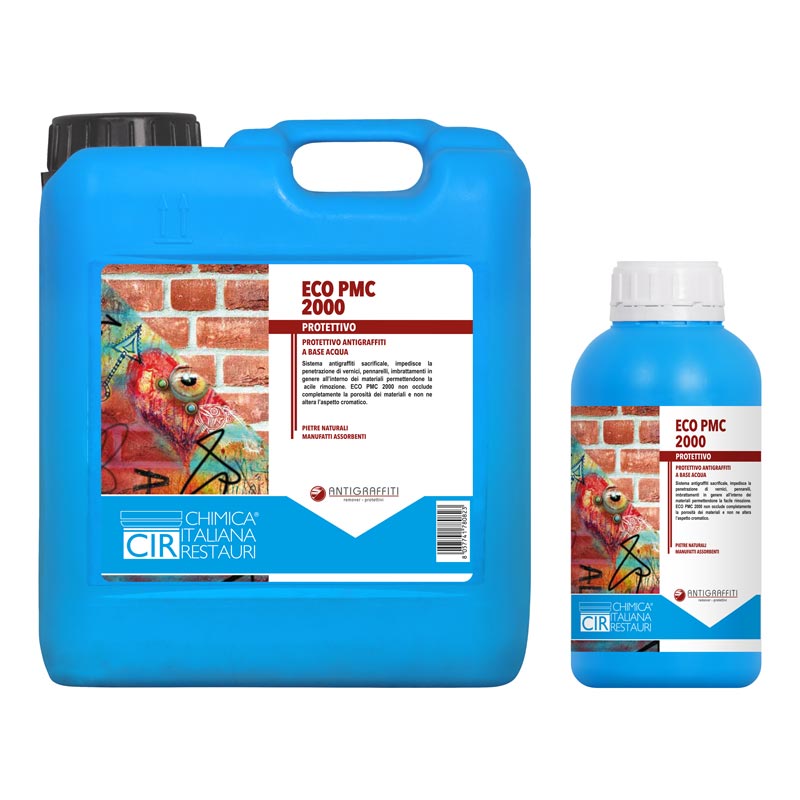 ECO PMC 2000 è un protettivo antigraffiti ed antismog sacrificale a base acqua, pronto all'uso. Ideale per pietre naturali, manufatti edili assorbenti e beni storico-artistici. Impedisce penetrazione di graffiti, vernici spray e manifesti, donando idro-oleorepellenza; pulibile con acqua calda in pressione, reversibile e resistente UV.