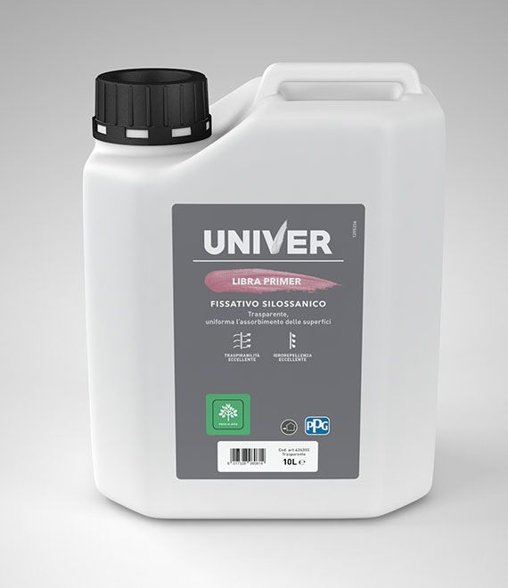 LIBRA PRIMER è un fissativo silossanico trasparente specifico per uniformare l’assorbimento delle superfici e preparare il supporto ai cicli silossanici. Ideale per garantire massima traspirabilità, ottima adesione e durata delle finiture silossaniche su intonaci, cementi e superfici minerali.