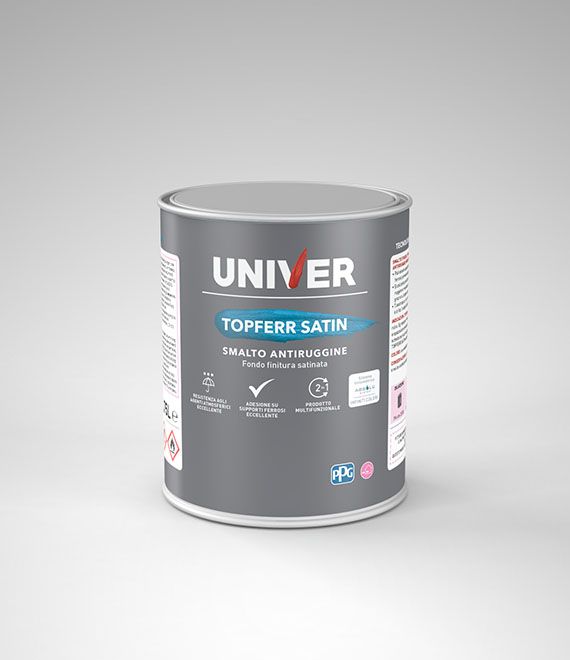 Smalto-antiruggine 2in1 monocomponente satinato per interni ed esterni, applicabile direttamente su ferrosi puliti o arrugginiti (post spazzolatura). Protegge dalla ruggine con calcio borosilicato e resiste agli agenti atmosferici grazie a caucciù ciclizzato. Tissotropico per applicazione senza colature.