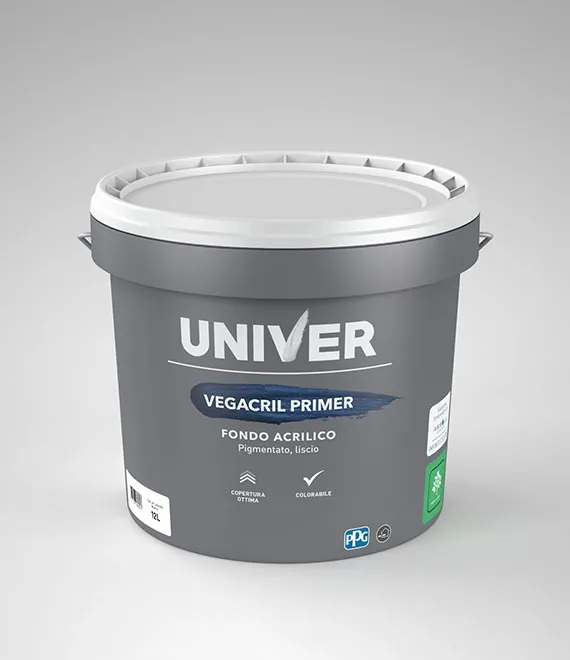Vegacril Primer è un fondo acrilico pigmentato, liscio e opaco, pensato per interni ed esterni. Indicato per intonaci, premiscelati e supporti in cartongesso, offre ottima copertura e buona traspirabilità. Facilita l’applicazione delle finiture successive con un’adesione migliorata e un aspetto uniforme.